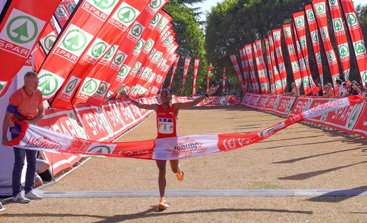 Glenrose Xaba (Boxer) clinched the SPAR Grand Prix title on Sunday with an emphatic win in the Johannesburg SPAR 10km Women’s Challenge with a time of 32:48. It was her fourth SPAR Women’s Challenge series win this year.