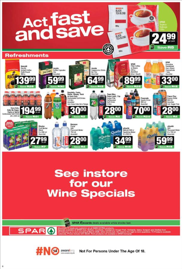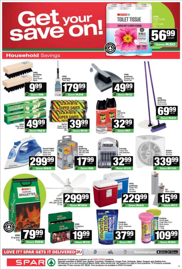 While stocks last. Specials not available at SaveMor stores.