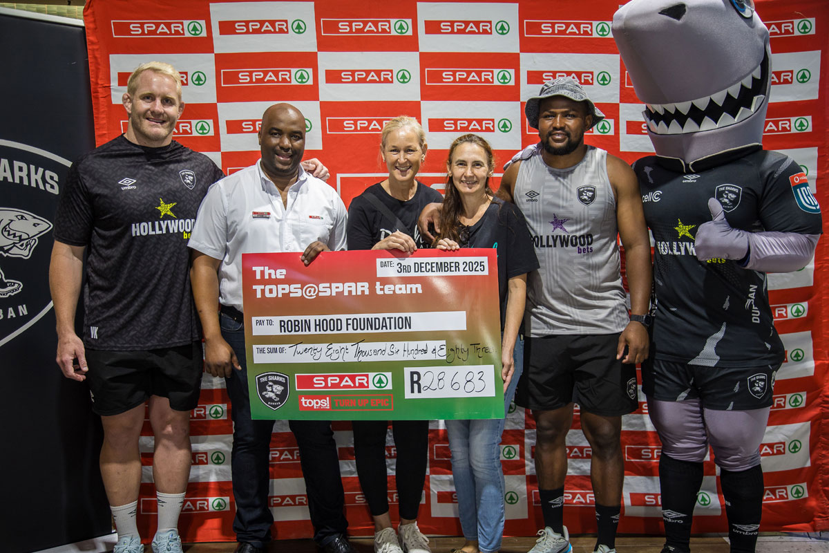 The Sharks players loaded trollies to the brim with desired items for the two organisations. At the handover presentation, SPAR and TOPS at SPAR matched the dash with cash. Masuku and Koch’s trolley value was R28,683 for The Robin Hood Foundation, while Fassi and Davids rang up a cheque for R26,000 for the Gozololo Centre for Children.