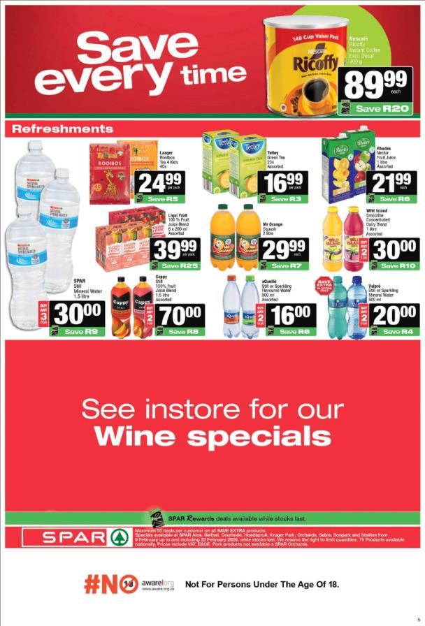 While stocks last. Specials not available at SaveMor stores.