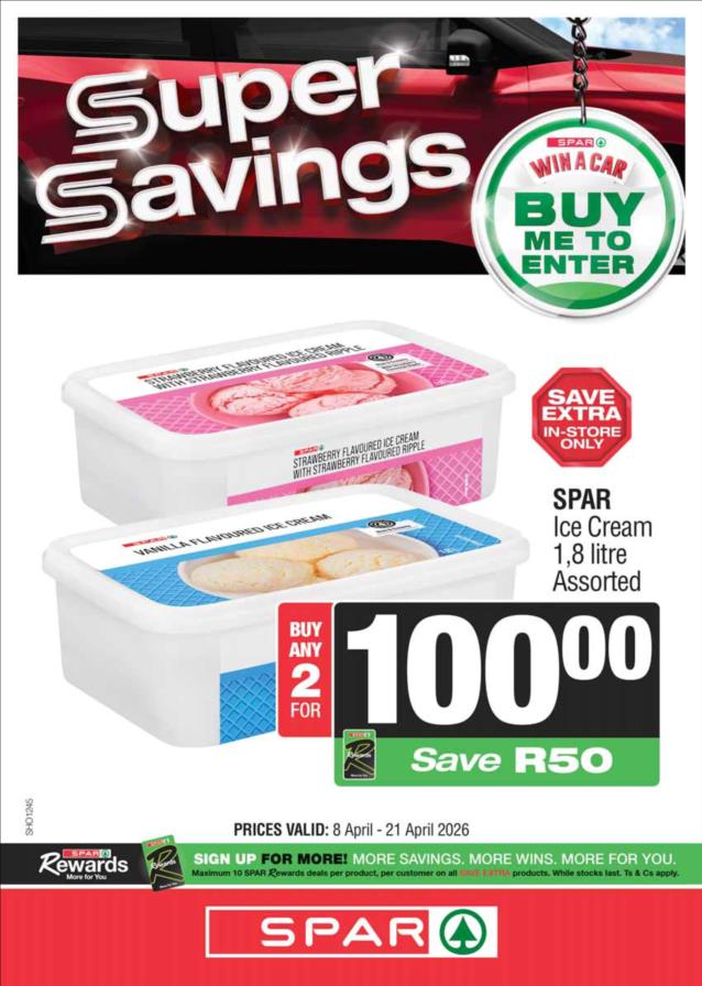 While stocks last. Specials not included at SPAR Express and Savemor.